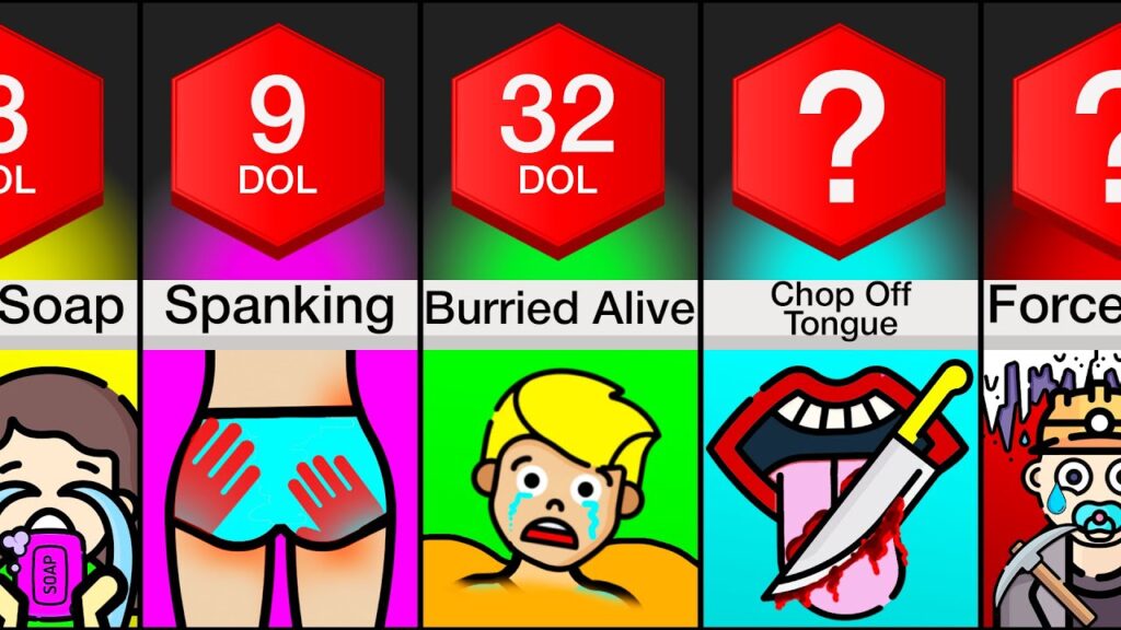 In this comparison video, we will show you different PUNISHMENTS used by some PARENTS. Did you know that soap was used to stop swearing? Or that animals were also used as forms of punishment. Watch this video to find out! This probability comparison/comparison video is made based on community discussions and relevant sources, numbers, and…