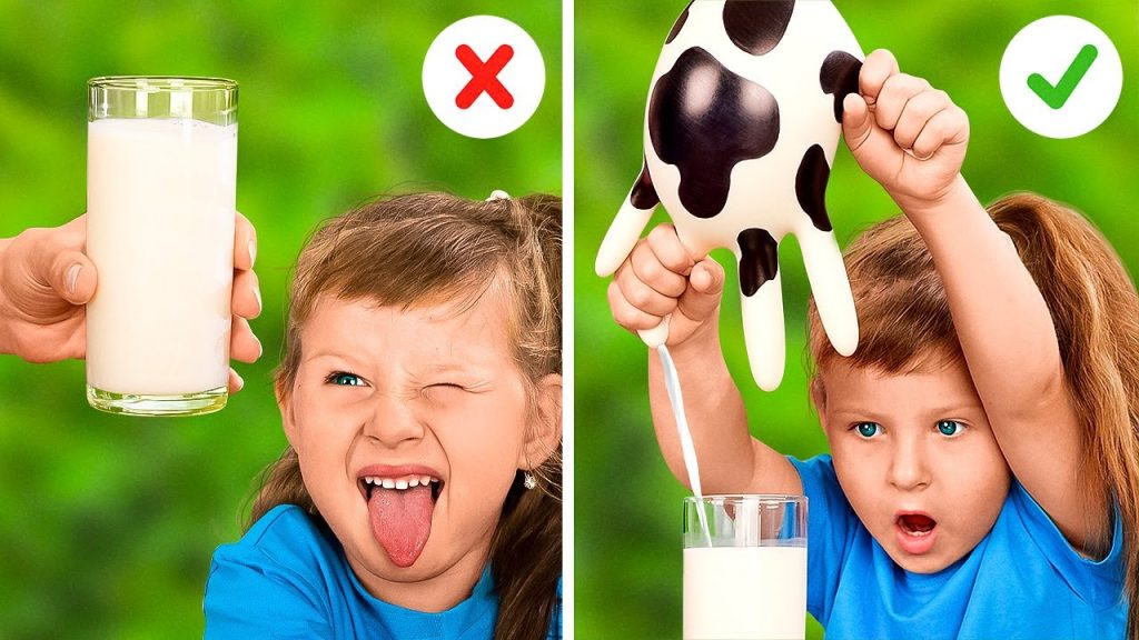 Parenting hacks and yummy snacks for kids Does your kid hate drinking milk? Well, here is a trick that may help you make your child at least try it. Maybe they will like it 😉 Get a rubber glove and make small holes in it to look like a cow’s udder. I know, it sounds…